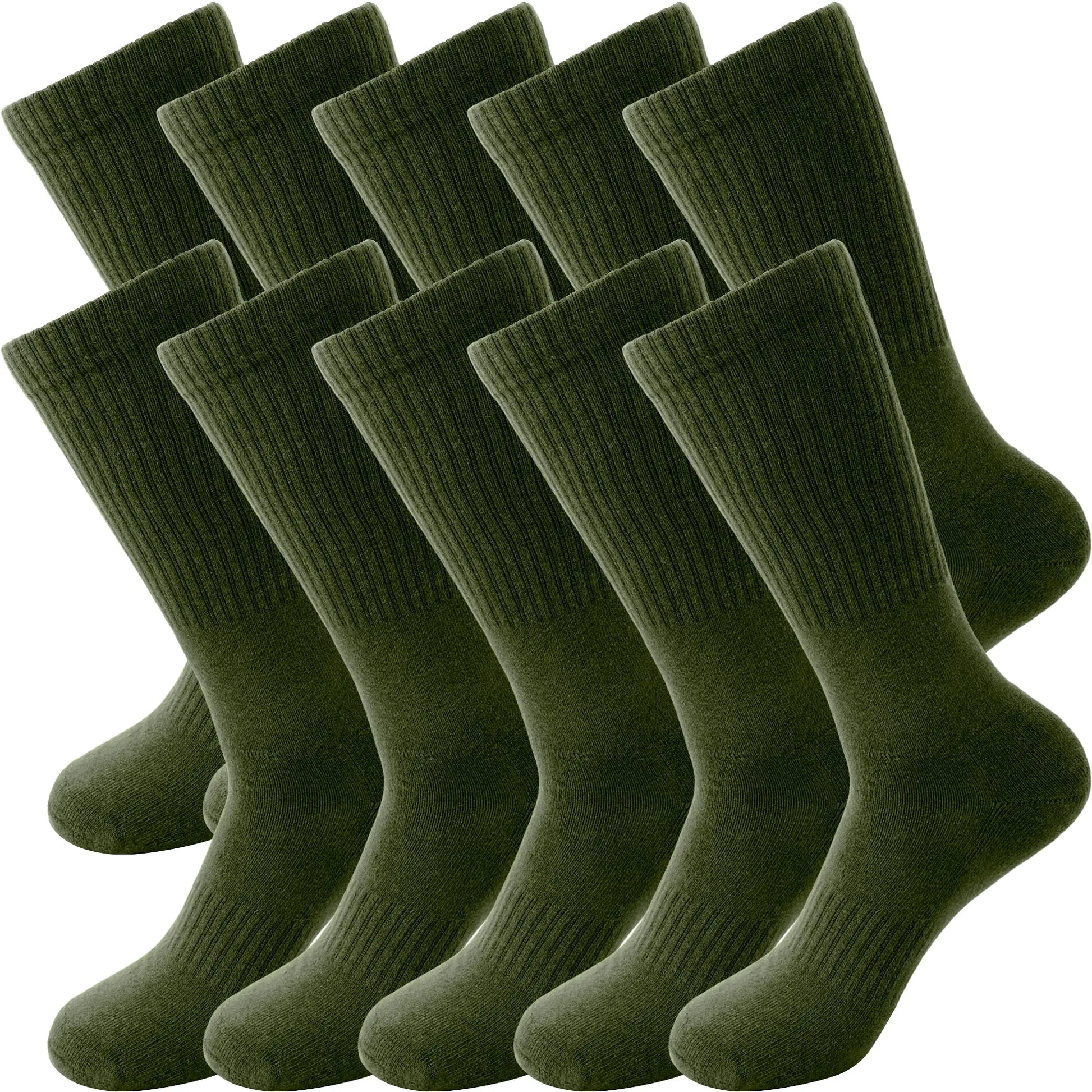 [【Size Details】: the sole length of the green military socks is about 21 cm/ 8.27 inch and the tube length is about 30 cm/ 11.81 inch flexible and elastic average size suitable for most men and women 【High-quality Materials】: green military crew socks are made of 70% cotton 22% polyester and 8% spandex fabric is soft and reliable not easy to fade or deform 【Practical Functions】: army green boot socks are mainly made of cotton breathable and sweat-absorbent keeping your feet dry all day long easy to match with various styles of uniforms shoes etc. fashionable and applicable making you look more attractive in the crowd 【Application Occssion】: military green crew socks can be worn in daily life suitable for the military uniforms advanced boots mountaineering hiking camping cycling football and other outdoor sports occasions and can be given as Christmas birthday gifts 【Package Includes】: you will get 5 pairs of green army socks enough for your daily wear and replacement you can share it with your family and friends]